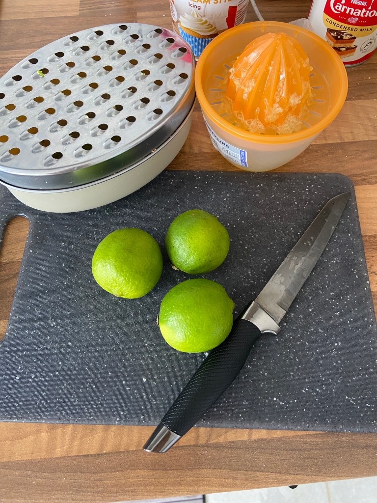 Zest and juice the five limes. Please mind your fingers when using both the knife and the grater – I’m accident prone so just thought I would share from previous experiences 😂.