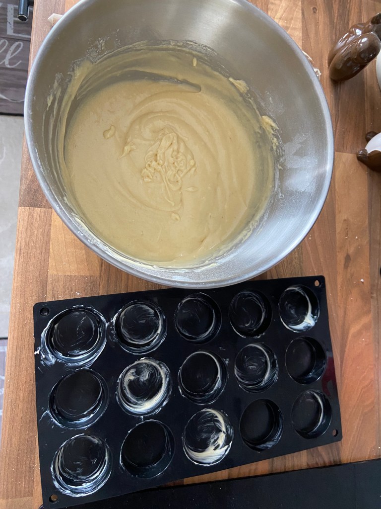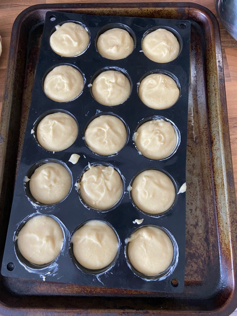 Preheat your oven to 180C (160C Fan or Gas mark 4). Grease your cake tin with some butter. I had a silicone tray which was the perfect size for the cake bites (I think it was for macarons).